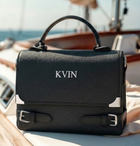 Kvin Obsidian Black Voyager Structured Top-Handle Bag