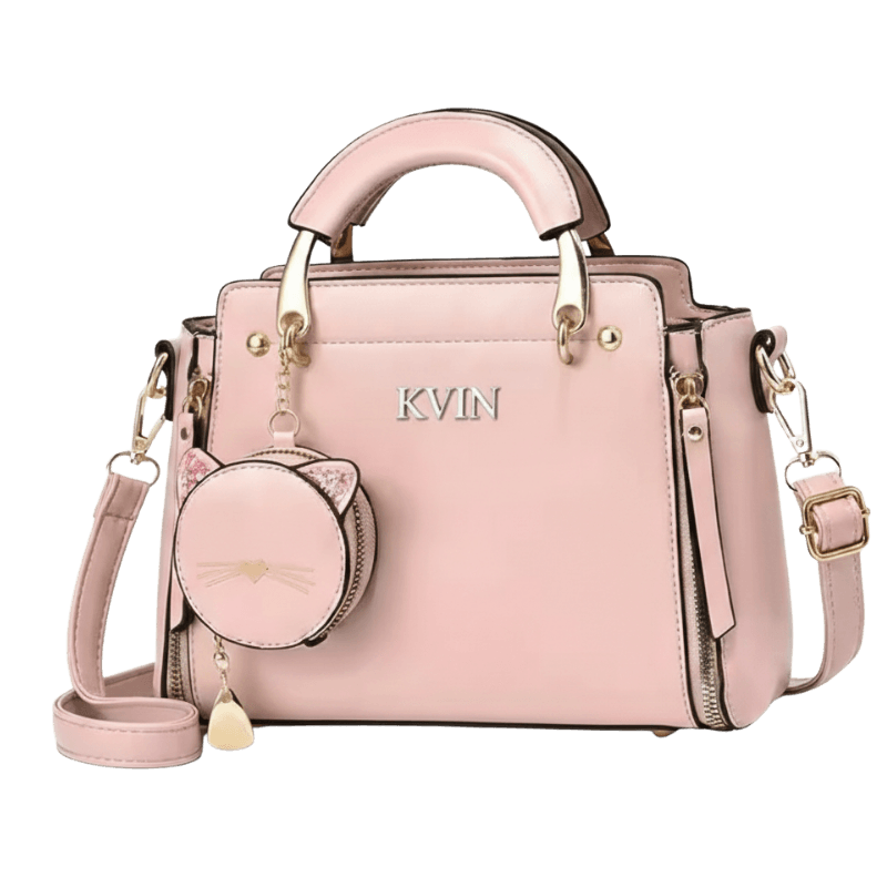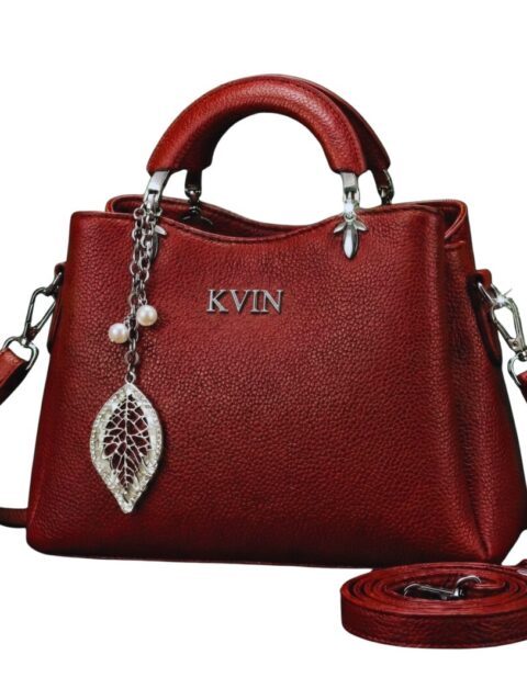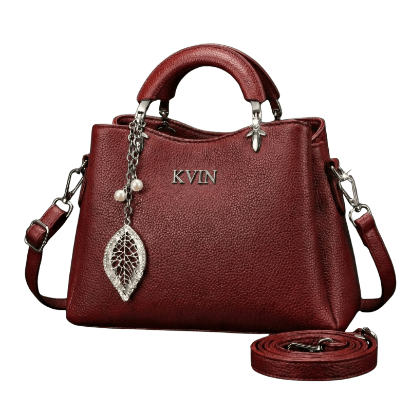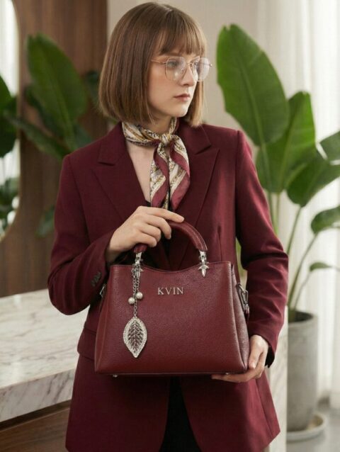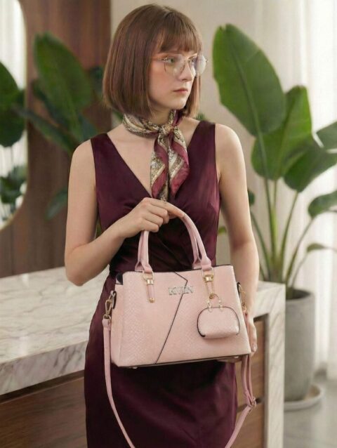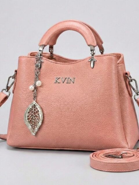 EIRA Rosy Pink Pebbled Leather-Style Tote with Silver Leaf & Pearl Charm