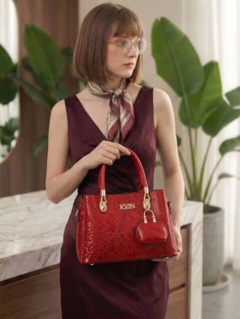 Aria Deep Burgundy Snakeskin Embossed Tote