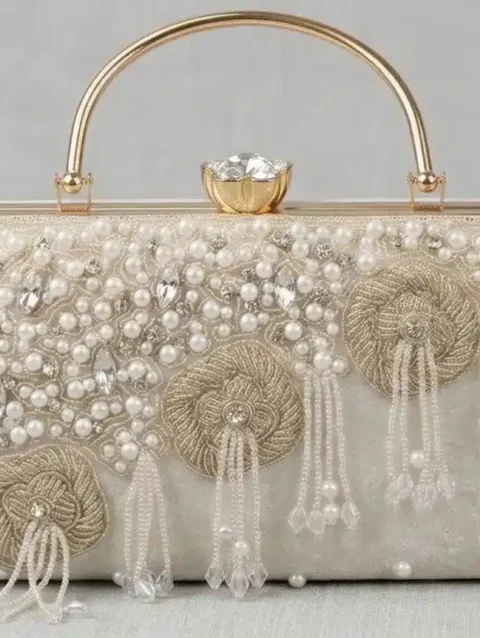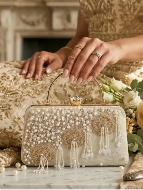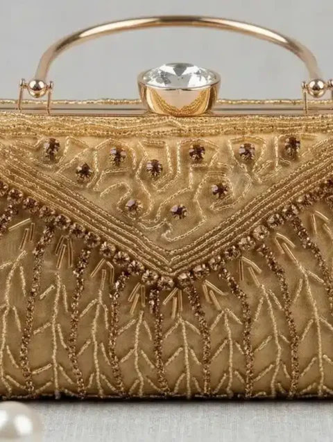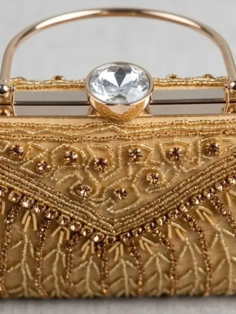 KVIN CYLA Premium Luxury Bridal Gold Beaded Evening Clutch