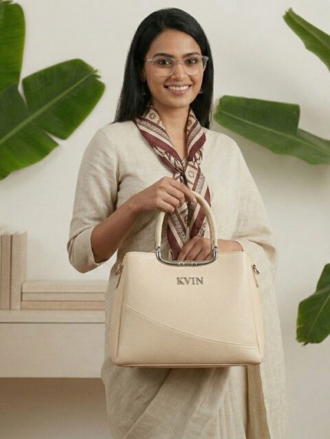 KVIN LYRA Premium Women’s Cream Beige Textured PU Leather Handbag