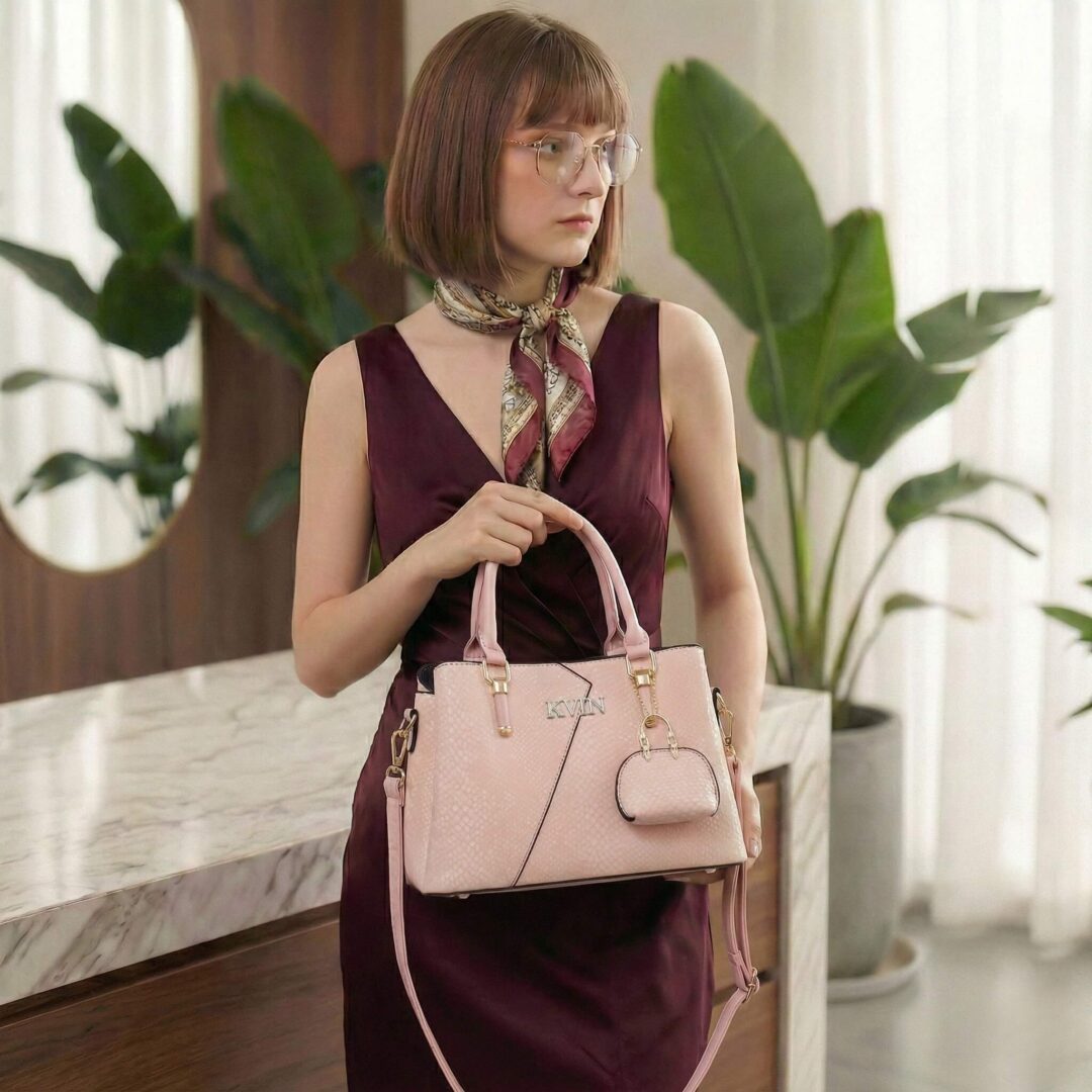 Soften your style with the KVIN Blush Pink Snakeskin Tote, a bag designed for those who love chic, playful elegance. The pastel pink hue, enhanced by a subtle retro snakeskin emboss, pairs beautifully with floral dresses, light denim, or neutral office wear. Finished with gleaming gold-tone accents, it is the ultimate accessory for brunch dates, shopping trips, or spring events.