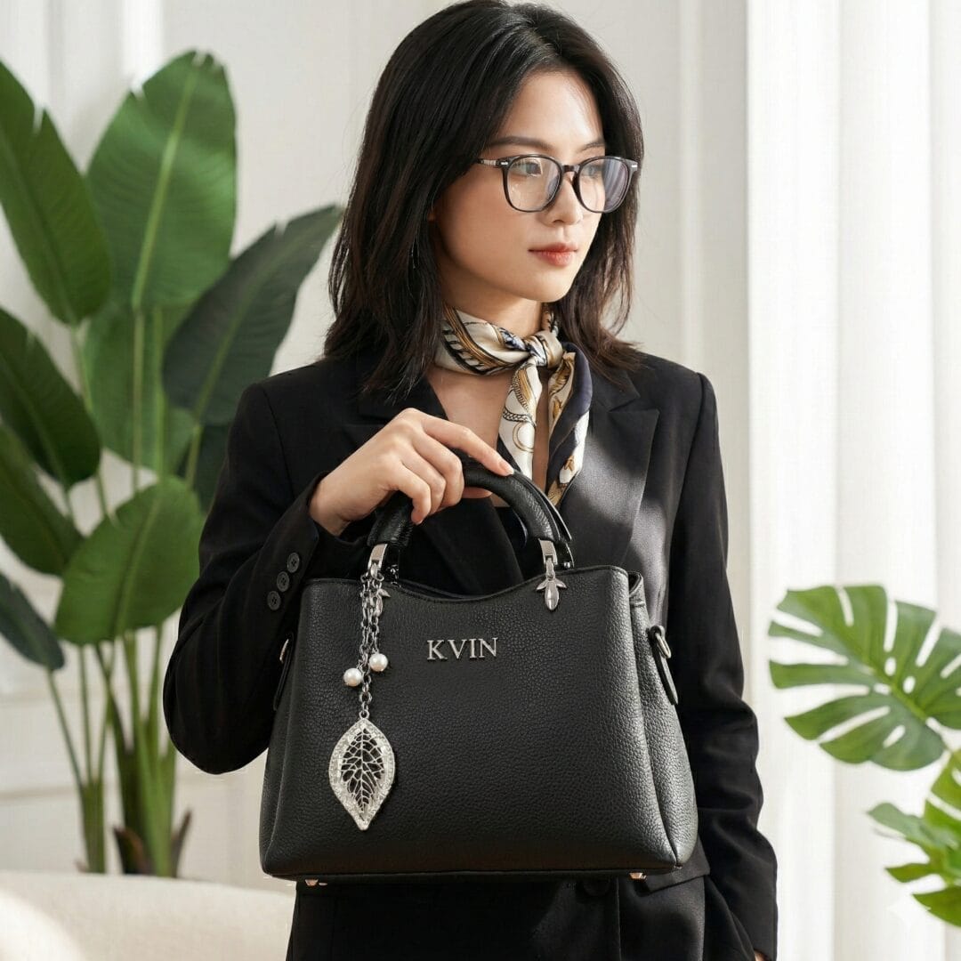 Wear it your way. The sturdy dual top handles offer a polished hand-carry look, while the detachable, adjustable shoulder strap allows for comfortable crossbody wear on busier days. Plus, the signature KVIN mini-charm attached to the handle serves as a stylish and practical spot for your keys, coins, or earbuds.