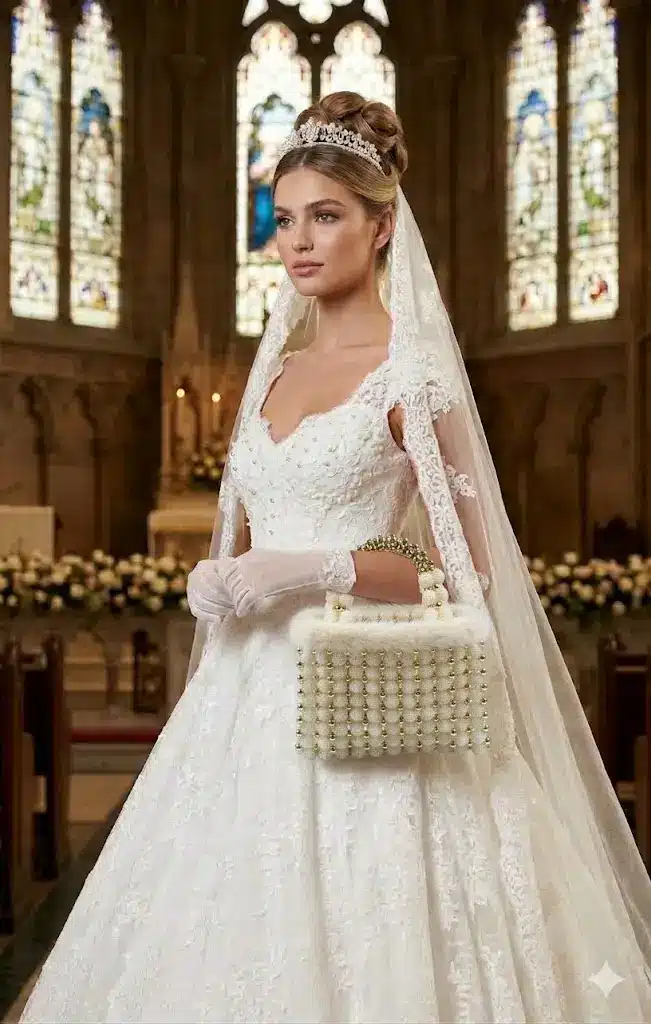 • Architectural Beadwork: A meticulous grid of ivory and gold beads creates a stunning 3D structural effect.