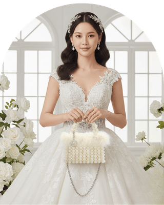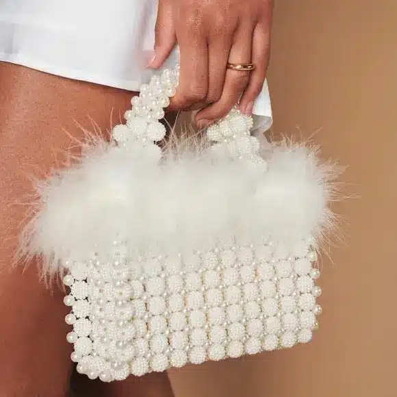 The design is elevated by a soft, voluminous feather trim that adds movement and a touch of vintage glamour. Its thick, pearl-clustered handle provides a comfortable and secure grip, making it as practical as it is beautiful. Whether paired with a minimalist silk slip dress or an elaborate bridal ensemble, the EXIA Pearl Edition offers a clean, sophisticated aesthetic that stands out in any room.