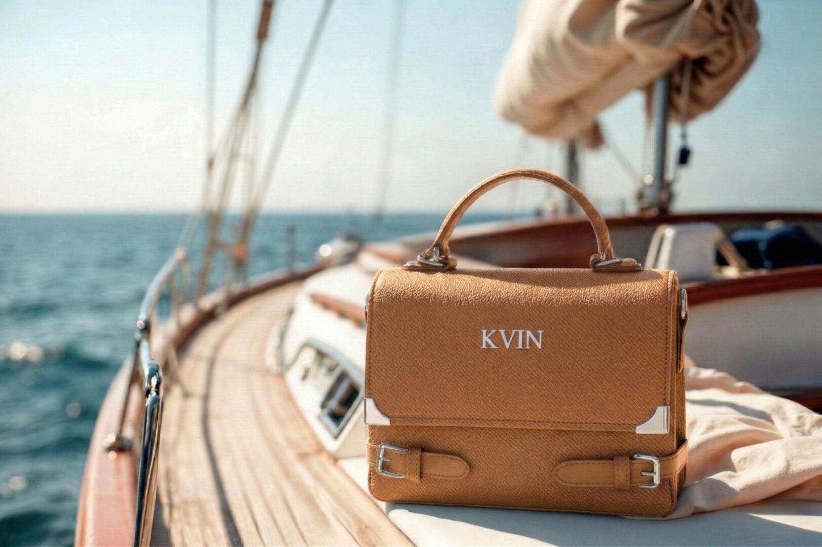 Signature KVIN Branding: Adorned with a custom, polished silver-toned KVIN metallic emblem on the flap, serving as a distinct mark of authentic, premium quality.