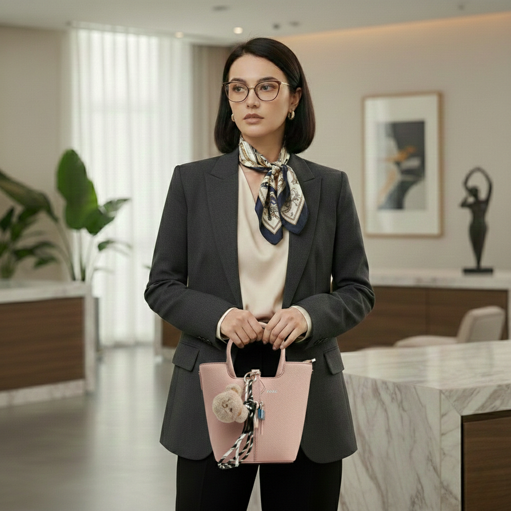 The KVIN “Petal Blush” Bucket Bag designed for those who love a feminine touch in their daily rotation, this bag is crafted from high-quality PU leather with a fine pebbled grain that resists wear while feeling incredibly premium. The interior is lined with luxurious silk, ensuring your essentials are cradled in softness.