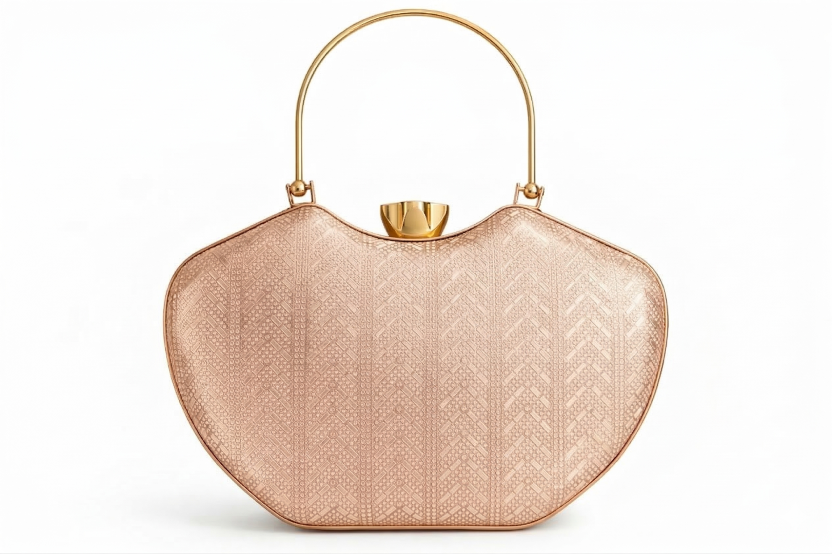 Sculptural Silhouette: A unique, curved architectural frame that stands out from standard clutches.